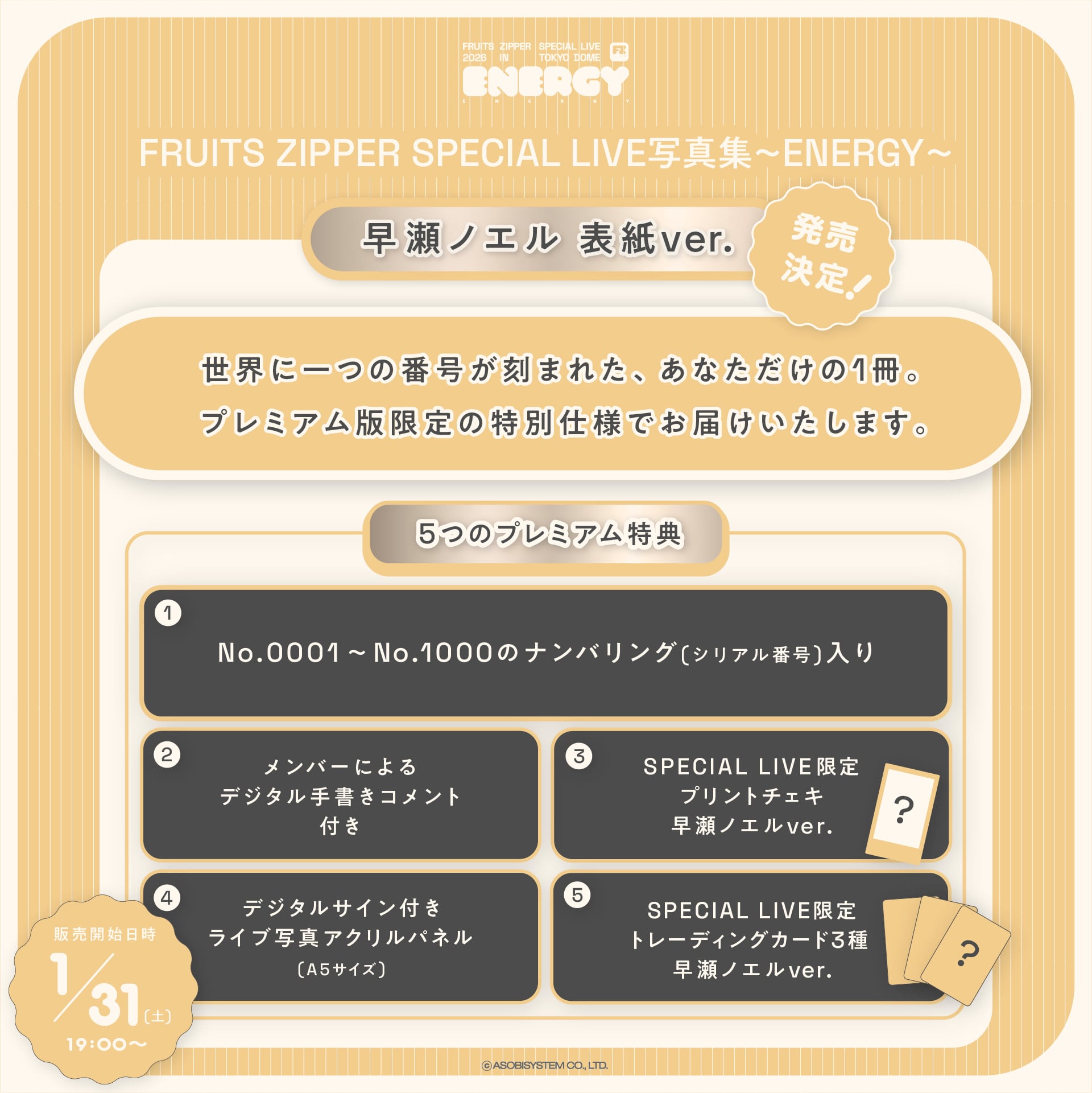 本商品は、「FRUITS ZIPPER SPECIAL LIVE写真集 〜ENERGY〜」PREMIUM版の早瀬ノエル表紙ver.です。